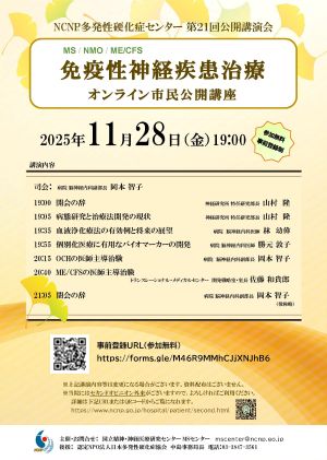 「免疫性神経疾患治療(MS、NMO、ME/CFS) オンライン市民公開講座」開催